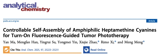 2025年11月,南开大学药学院郗日沫教授和孟萌教授、天津大学赵秀杰副研究员在Analytical Chemistry杂志发表了题为“Controllable Self-Assembly of Amphiphilic Heptamethine Cyanines for Turn-On Fluorescence-Guided Tumor Phototherapy”的研究性论文。该研究融合分子设计与自组装技术,针对七甲川花菁染料的光学特性与肿瘤靶向性优化,开发出高对比度、高效能的两亲性七甲川花菁(IR780-NCn,n = 3、6、12、18)。