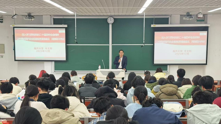 南开新闻网讯(通讯员 胡亚文)12月18日,南开大学党委副书记牛文利以“深入学习贯彻党的二十届四中全会精神 以中国式现代化全面推进强国建设、民族复兴伟业”为题,为药学院、旅游与服务学院、信息与传播学院师生讲授“形势与政策”课。三学院师生以线上、线下相结合的方式参加本次课程学习。