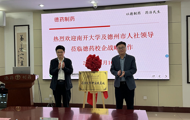 4月10日,学院一行抵达德州德药制药有限公司,实地参观企业展厅与生产车间,详细了解生产流程、质量管控与研发平台建设。座谈会上,德州市人力资源和社会保障局党组成员、副局长孙丙峰致辞并介绍地方人才政策;德药制药副总经理陈妍松、研发总经理李成文分别介绍企业发展与科研布局。尚鲁庆院长介绍学院办学特色与优势方向,双方围绕人才培养、实习实训、科研合作等深入探讨,并为“药学院科研实践基地”进行揭牌,标志着校企合作迈入常态化、实质化新阶段。座谈期间,学院还与山东大学齐鲁医院德州医院、山东安舜制药等单位开展联动交流,进一步拓展校地、校企合作广度与深度。