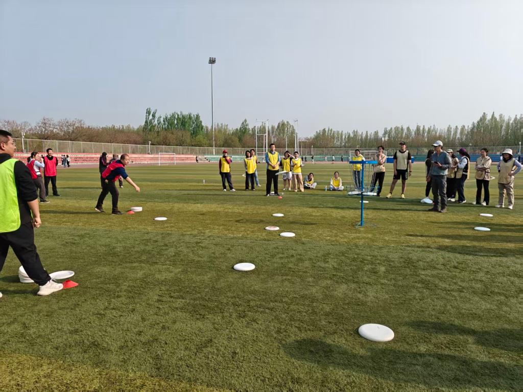 活动伊始,两院领导共同为飞盘友谊赛开球,活动在轻松热烈的氛围中拉开序幕。本次活动设置了飞盘接力赛、飞盘保龄球、飞盘九宫格及“守护安全·飞盘护航”国家安全教育日竞答挑战4个项目,各项目均以团队协作形式展开。